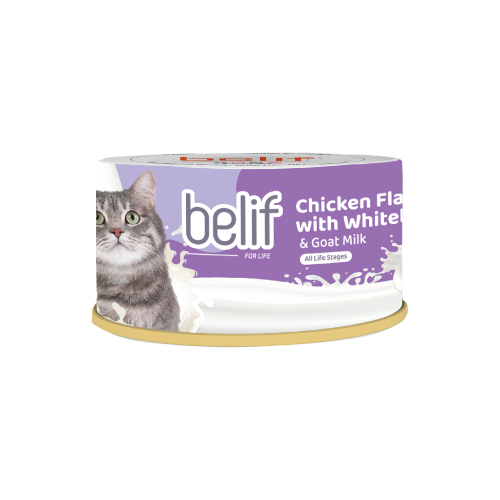 Give your cat a creamy, nutritious delight with Belif Chicken Flakes & Whitebait with Goat Milk. This specialized recipe features tender shreds of premium chicken and tiny, whole whitebait in a luscious goat milk base. It’s designed for maximum palatability and is especially gentle on the stomach, making it the ultimate comfort food for cats of all life stages.